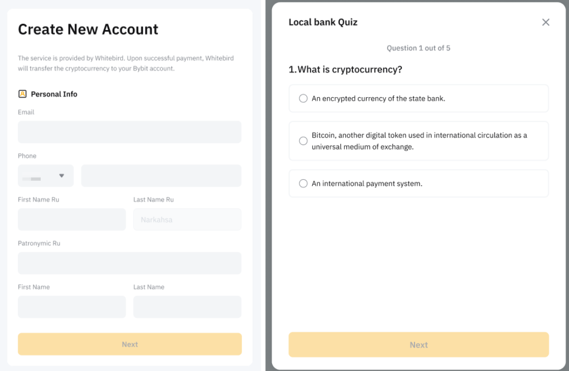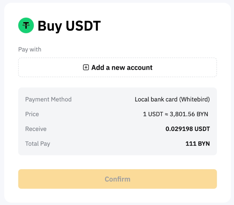 5. Click on Buy With RUB/BYN and you will be asked to create a new virtual account with Whitebird.