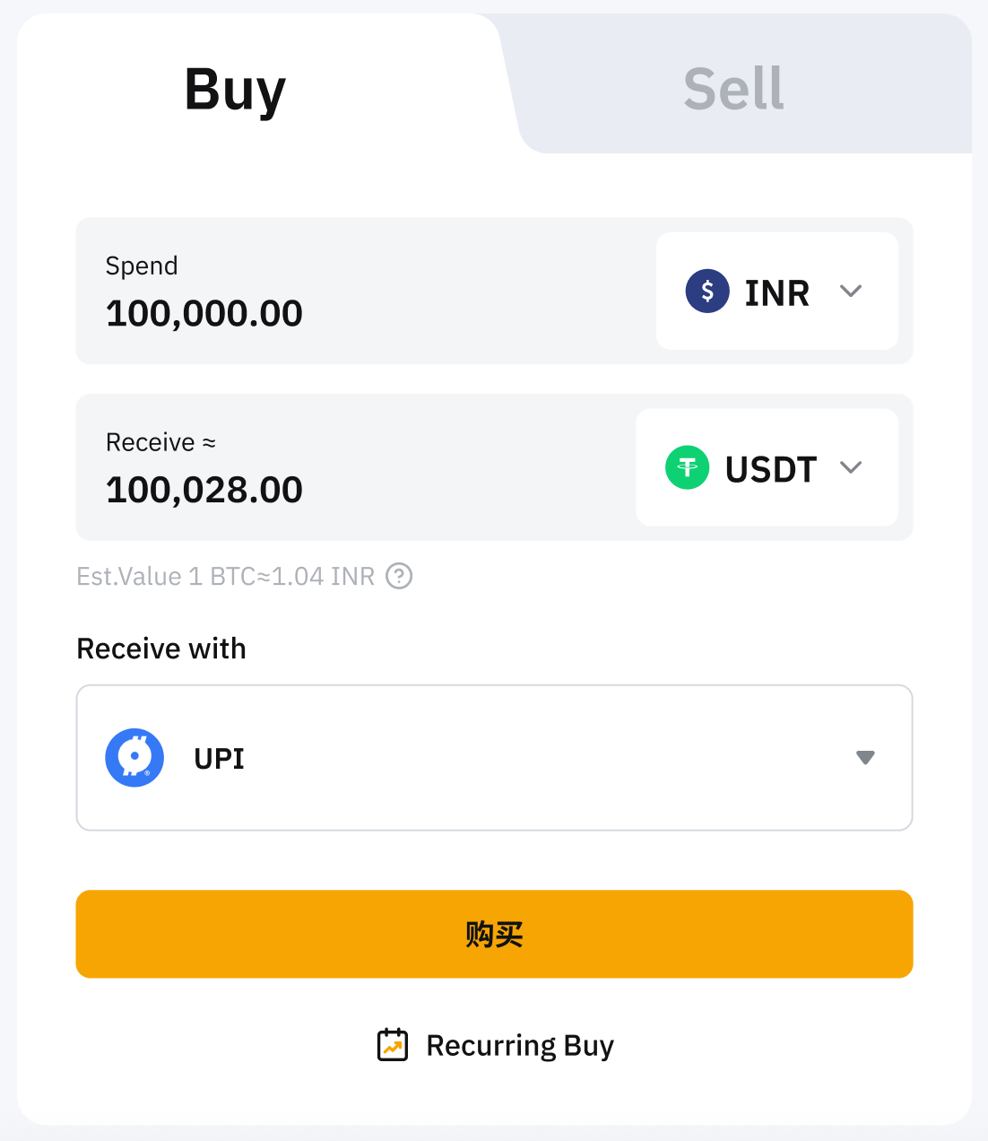 Step 1: Click on Buy CryptoOne-Click Buy at the top left corner of the navigation bar to enter the Buy function page.