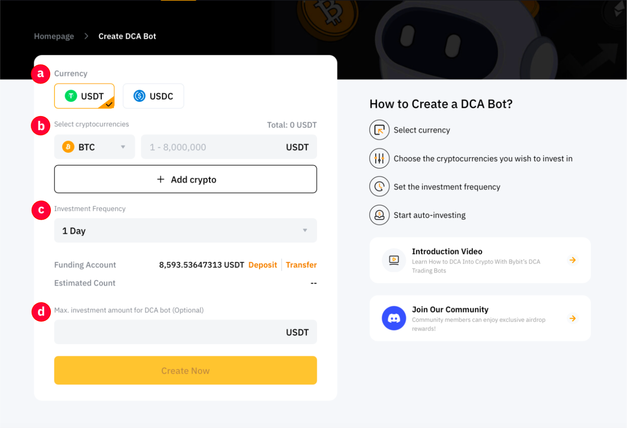 Please note that your first DCA investment starts when you successfully create a DCA bot.