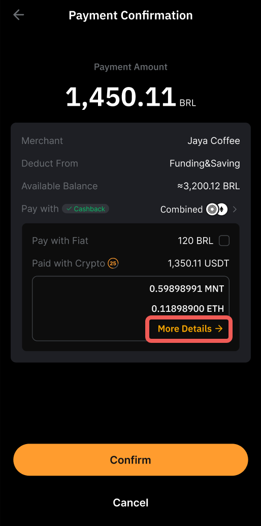 • You can click More Details to view the quoted price of the other usable crypto assets.