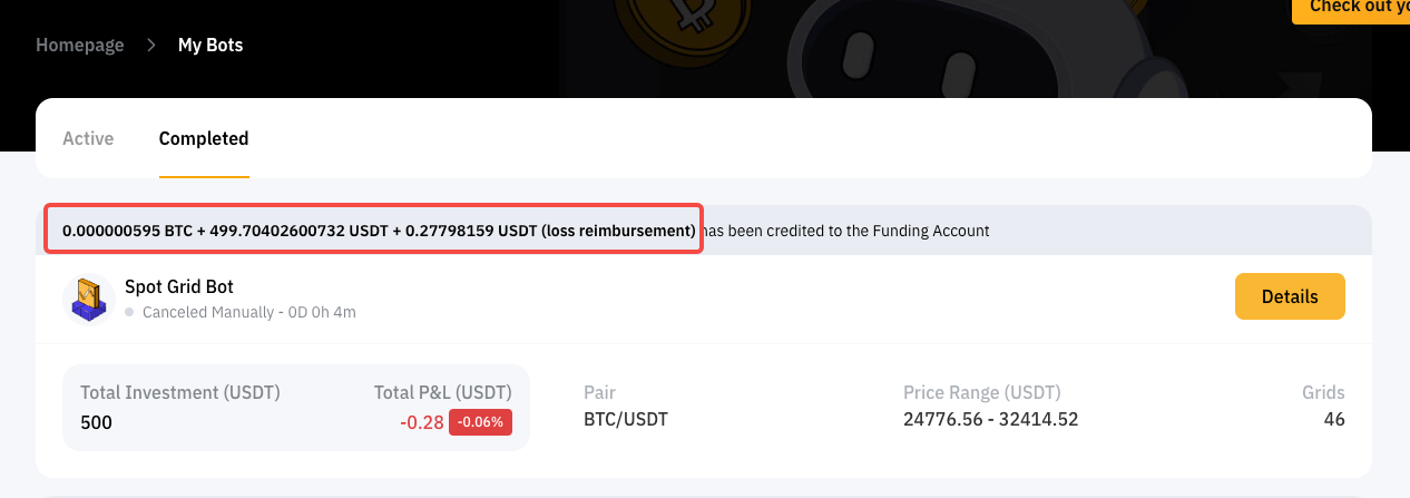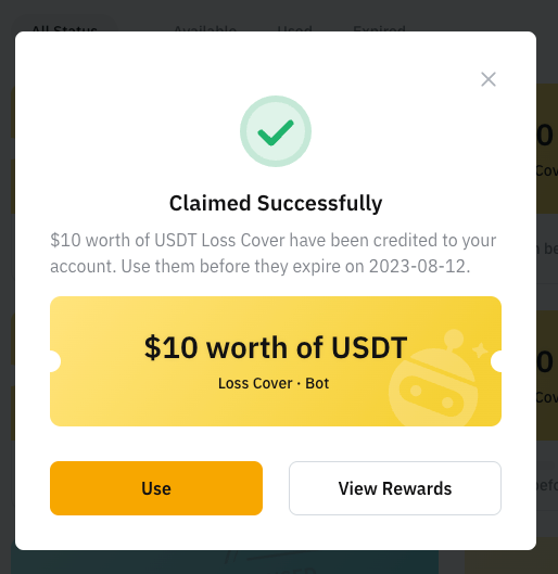 Note: The applicability of the Loss Cover Voucher may vary depending on the type of trading bot. Please check the reward details for specifics.