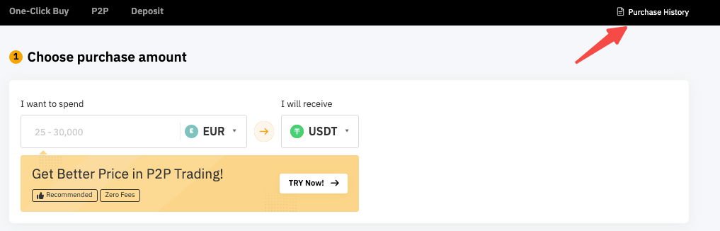 Paso 7: Después de comprar criptomonedas correctamente en tu cuenta de Bybit, puedes hacer clic en Historial de compras para ver los registros históricos de transacciones.
