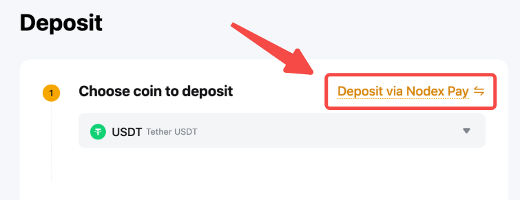 Paso 2: Selecciona USDT y cambia al método de depósito en Nodex Pay.
