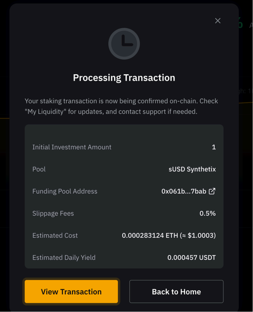 Langkah 3: Jendela pop-up akan muncul untuk menunjukkan bahwa transaksi sedang diproses. Setelah transaksi selesai, Anda dapat melihat transaksi dengan mengeklik tombol Lihat Transaksi.