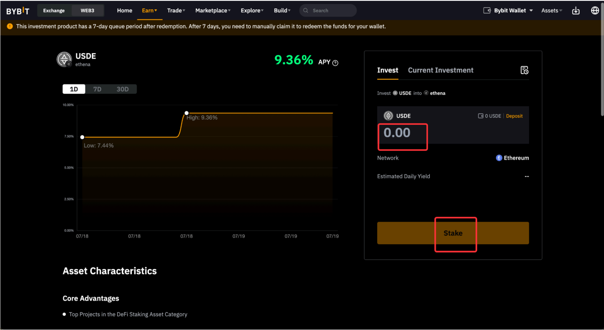 Berikut adalah panduan langkah demi langkah tentang cara membuat Staking Wallet pertama Anda dengan Bybit Wallet di Situs Web. Sebelum melakukan staking, Anda harus membuat Bybit Wallet dan mendepositkan token staking yang diinginkan ke dalamnya.