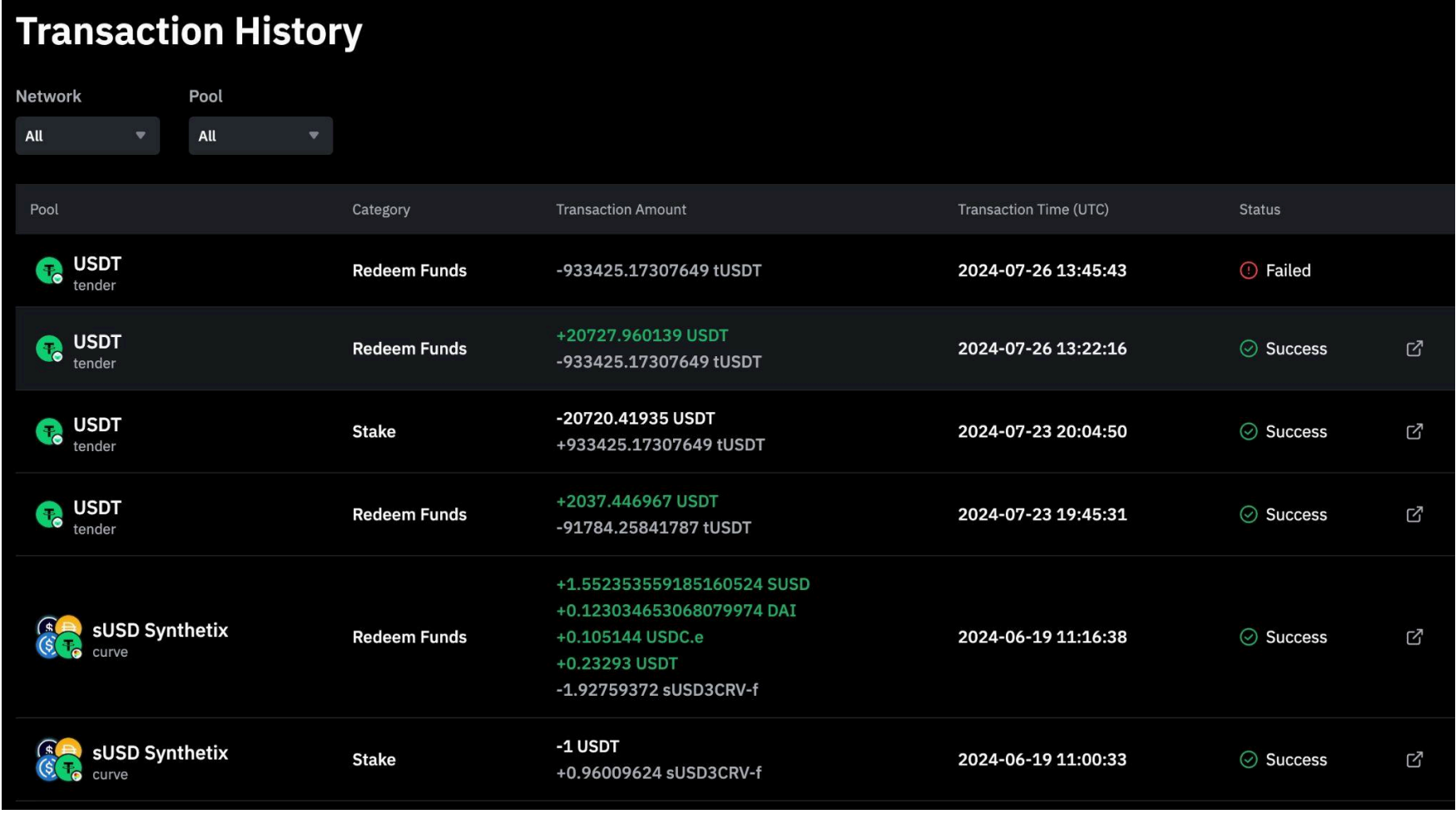Setelah staking berhasil, detail transaksi akan ditampilkan dalam riwayat transaksi.