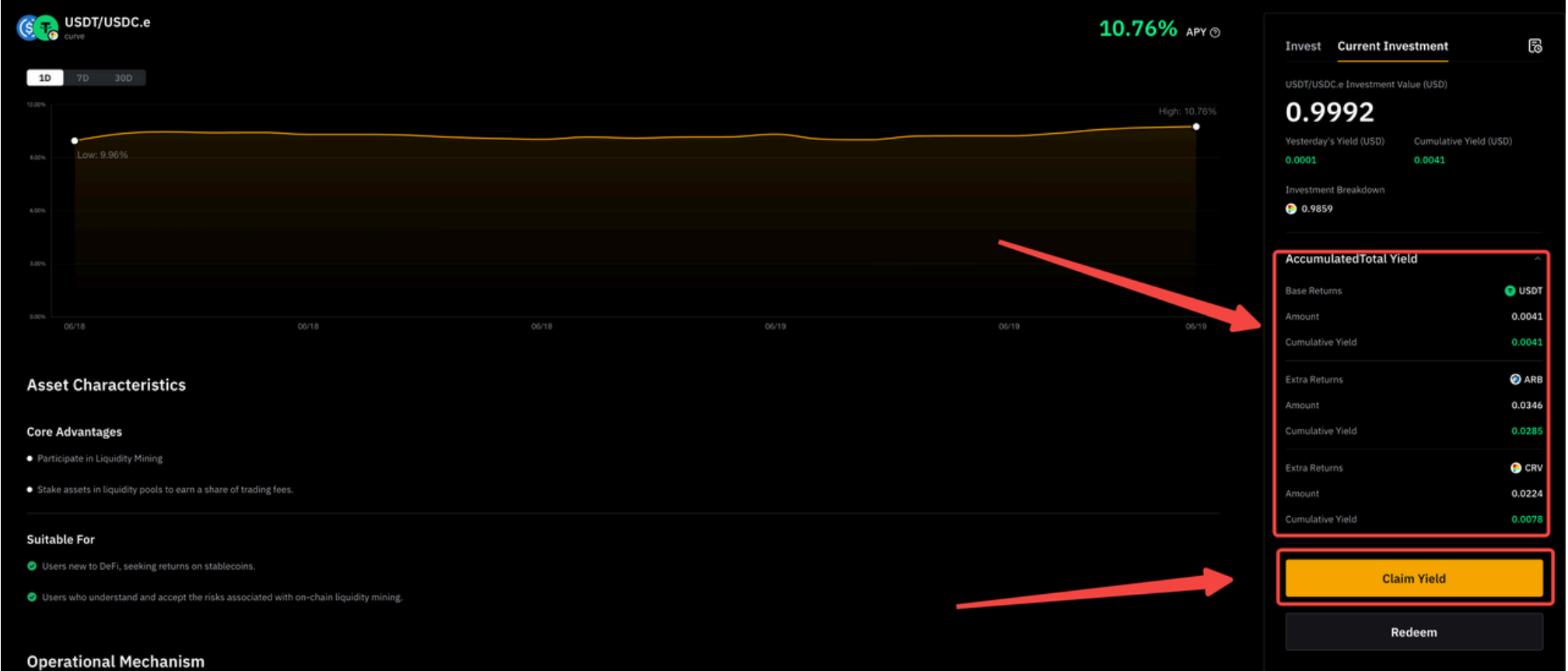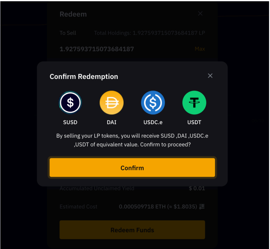 Langkah 4: Konfirmasi detail penebusan, yaitu jumlah dan token yang diterima, dengan mengeklik Konfirmasi.
