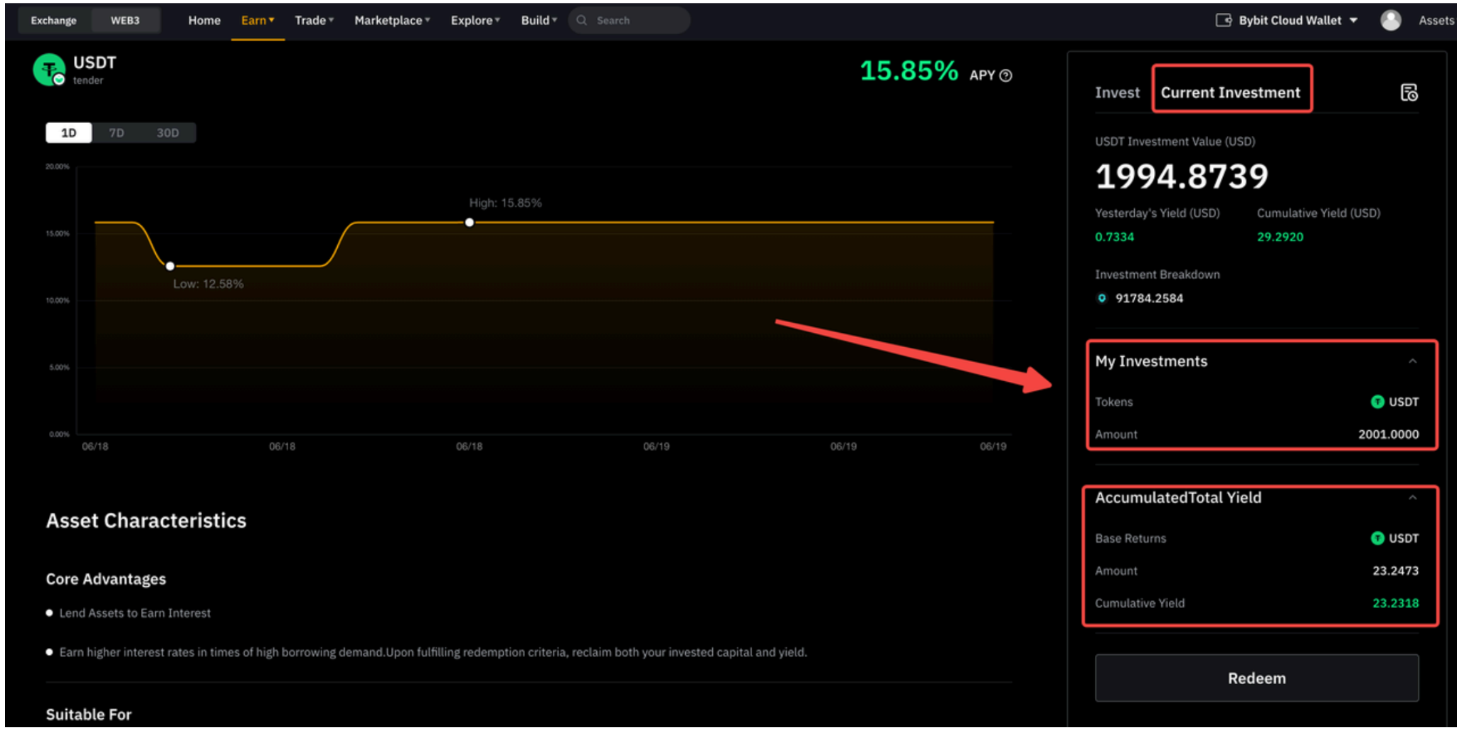 Langkah 1: Navigasi ke Wallet → Staking → Detail Investasi.