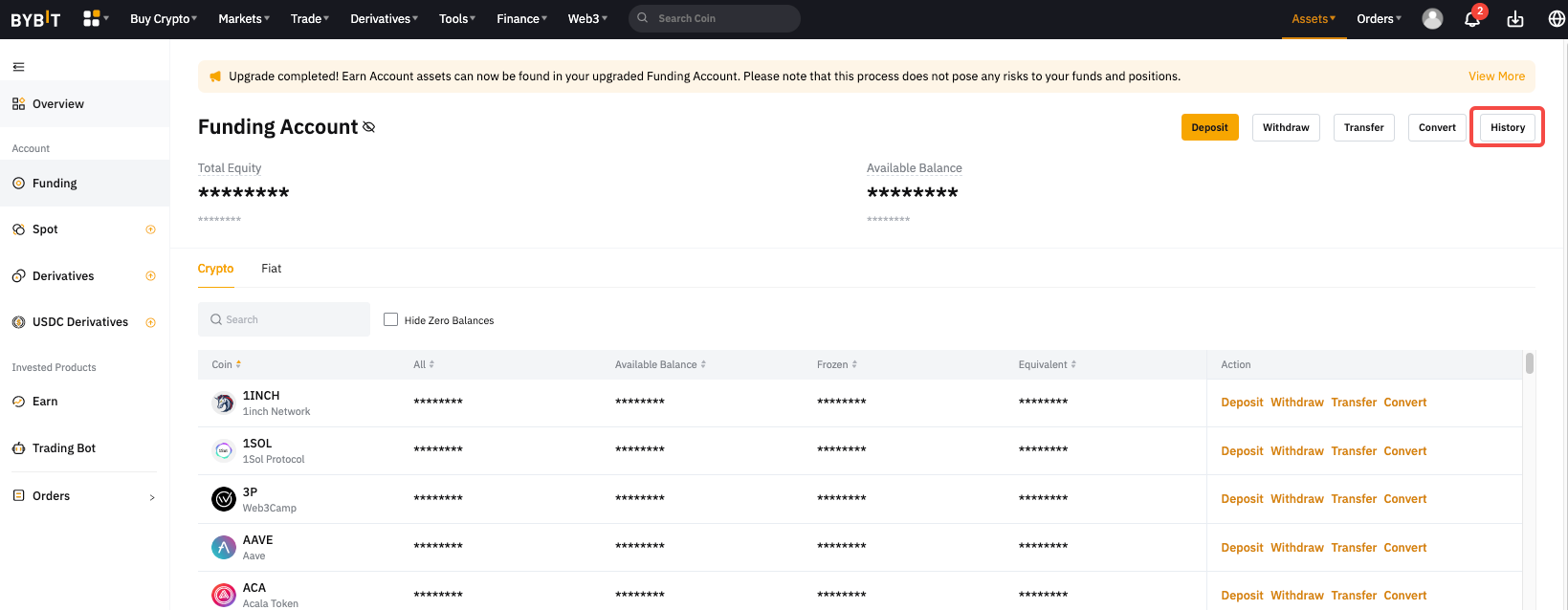 Langkah 2: Klik Riwayat untuk menuju ke laman Riwayat Akun Pendanaan.