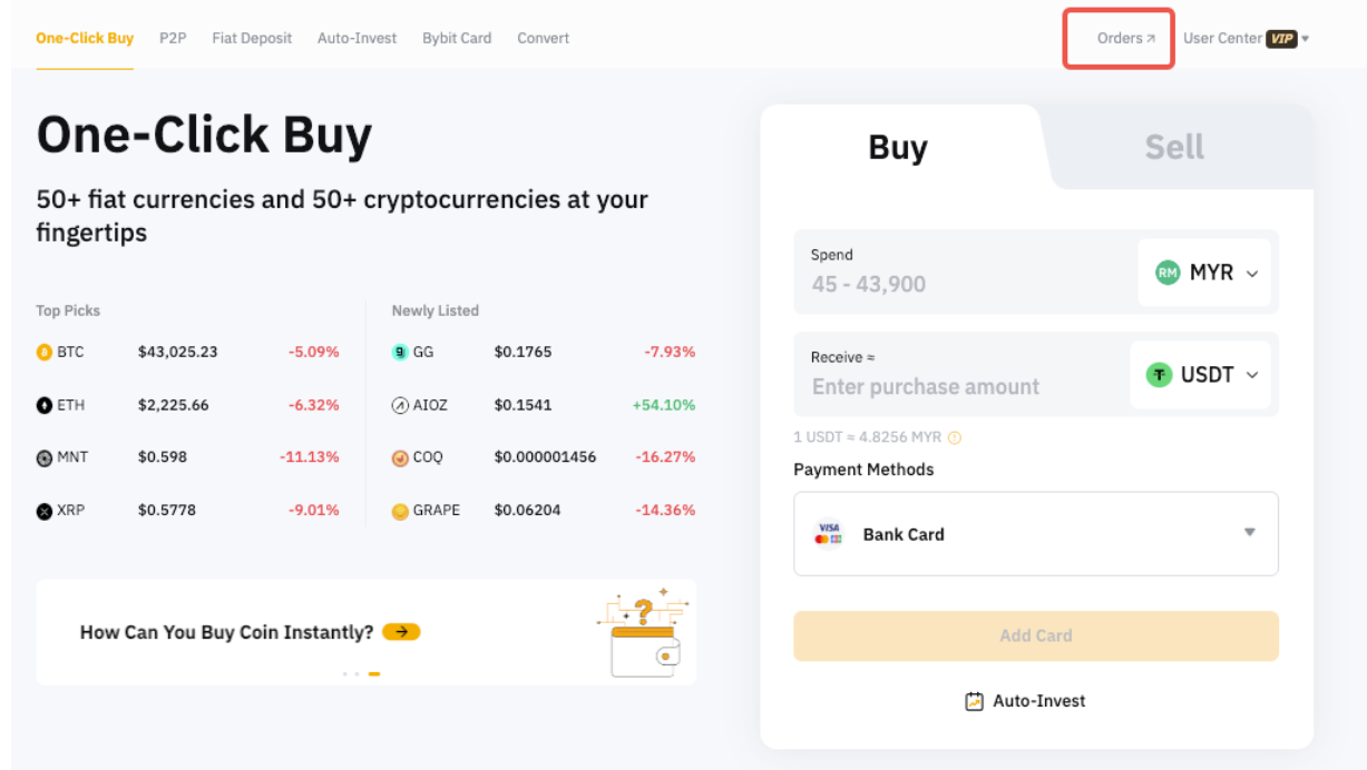 Se você encontrar algum problema com sua compra, você pode entrar em sua conta Bybit e clicar no ícone de suporte no canto inferior direito para contatar o suporte Bybit LiveChat - ou enviar seu pedido através deste formulário. Para ajudá-lo a resolver qualquer problema de forma mais eficiente, favor fornecer seu UID, número de pedido e qualquer captura de tela aplicável.