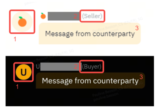 • Sempre confira o avatar do perfil e o estilo da nuvem de mensagem para ter certeza de que você está conversando com a plataforma P2P verdadeira no Chat de ordens P2P. Dica útil: