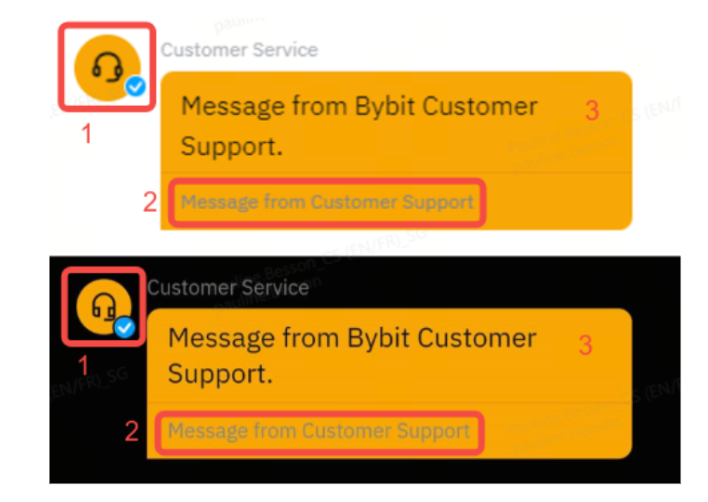 A foto do perfil de todas as mensagens do atendimento ao cliente da Bybit será o ícone do fone de ouvido e o tick azul oficial aparecerá no canto inferior direito.
