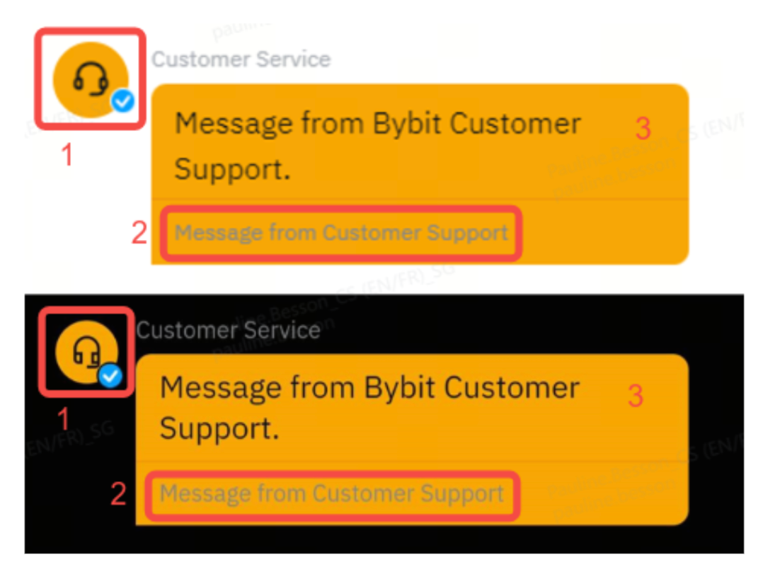 Все сообщения от Службы поддержки Bybit появляются на оранжевом фоне |