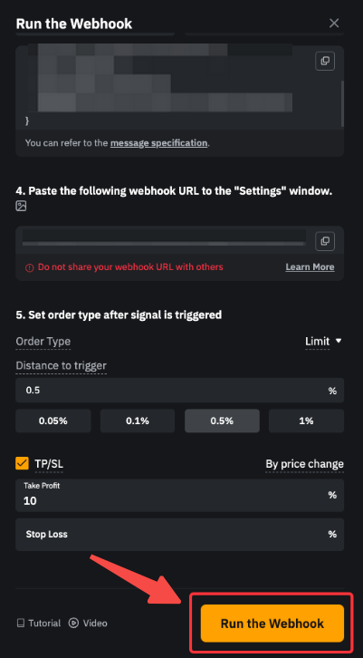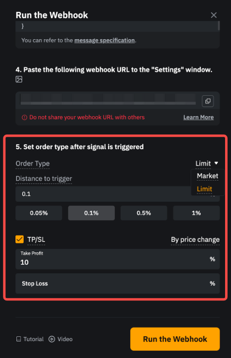 — НЕ ПЕРЕДАВАЙТЕ свой веб-хук URL-адрес другим лицам, поскольку в результате этого вам могут приходить ложные/мошеннические сообщения или ордера.