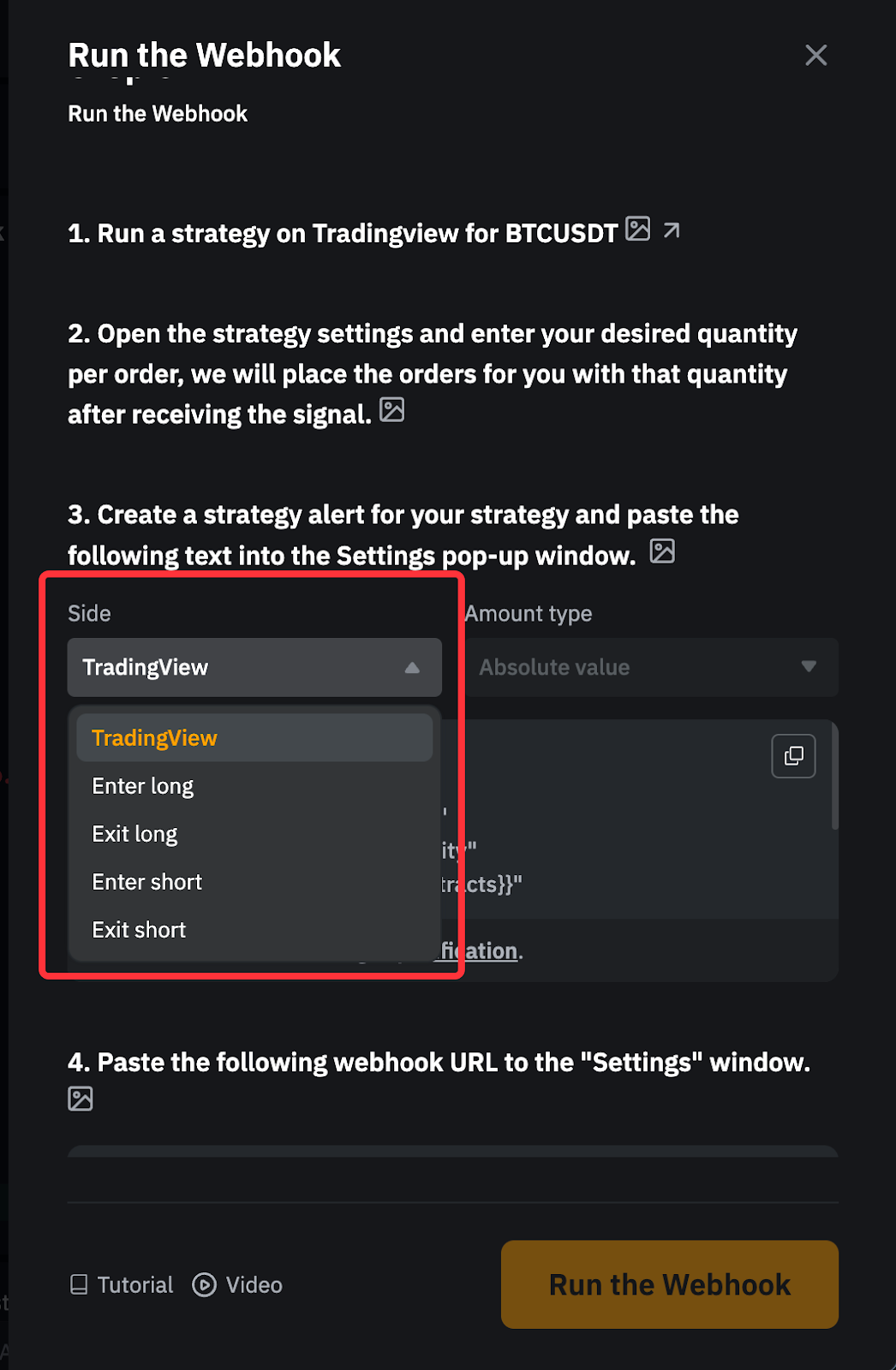 — Убедитесь, что в вашей стратегии не используется режим хеджированная позиции, так как сигнальная торговля с веб-хуком поддерживается только в одностороннем режиме.