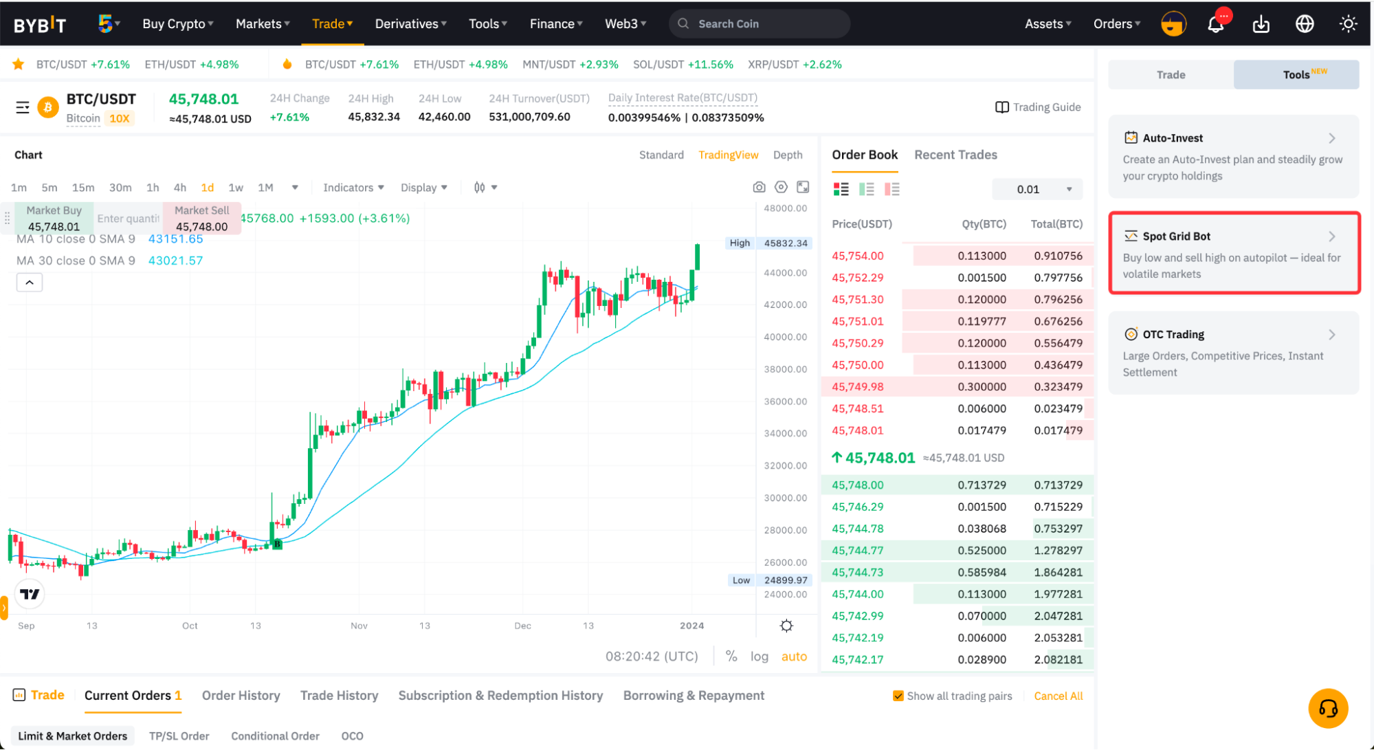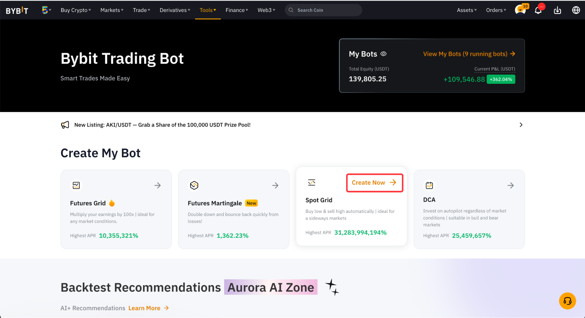 本分步指南将引导您完成创建首个 Bybit 现货网格机器人的整个流程。