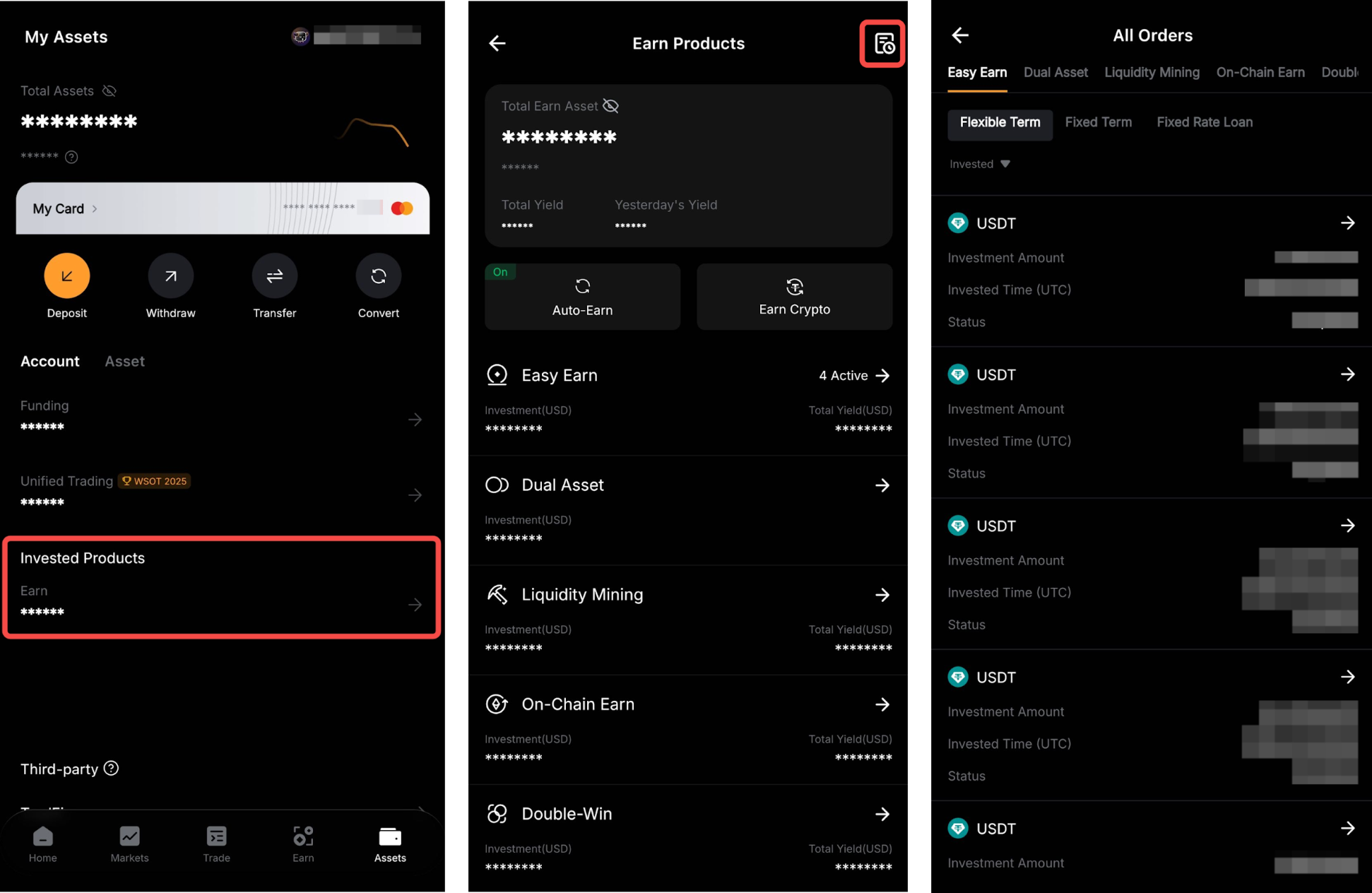 您可以前往资产 → 资金 → 右上角的历史图标 → 筛选理财记录,查看您成功的交易。